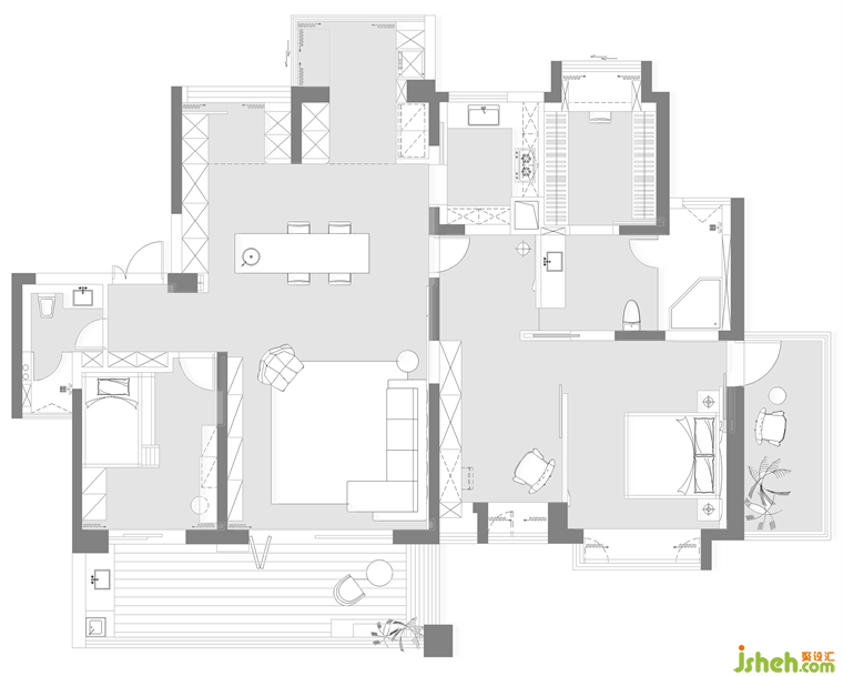 結(jié)合戶型的實(shí)際情況,便有了這個(gè)175㎡的兩房空間。