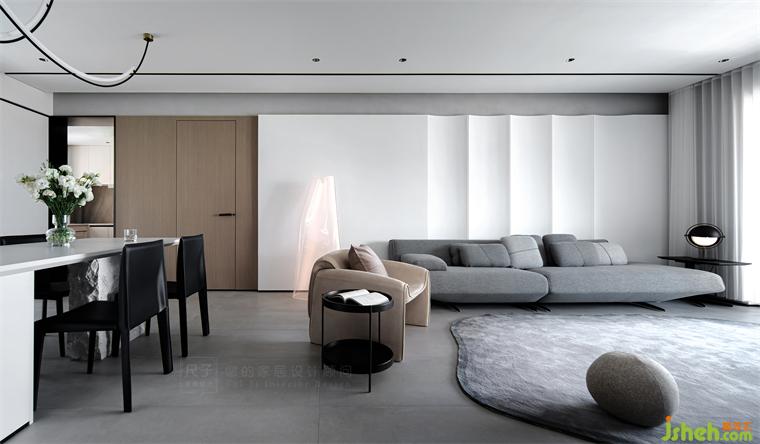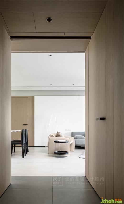 家裝設(shè)計(jì)視線的盡頭是白色的波浪板背景,端景的營造更讓人有種豁然開朗之感。