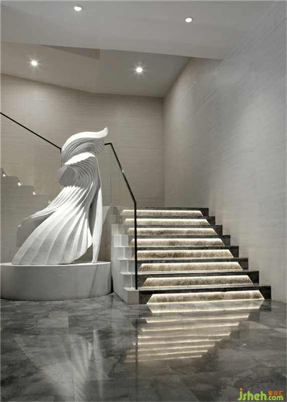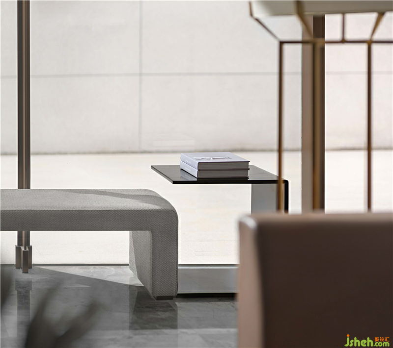 轉(zhuǎn)角處的玻璃墻面,使景色進(jìn)行折疊,猶豫如一個幾何形的空間映像,將之轉(zhuǎn)換成一個場景、一幅畫、一種感覺。裝修公司