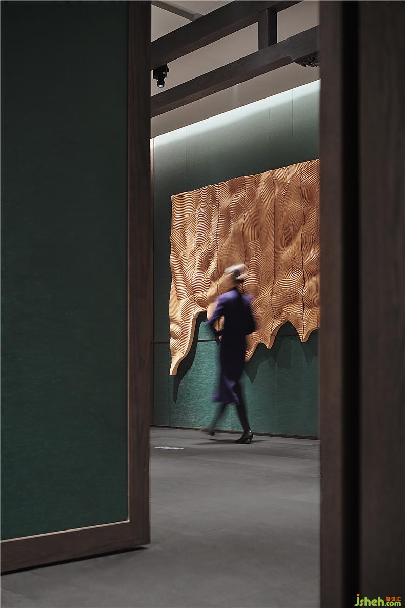 山水之間在于一個(gè)“隱”字,樓閣隱于天青煙雨中,虛實(shí)隱于秩序變換里,文化的傳承則隱匿于每一處,將空間作為時(shí)間的表達(dá)載體,賦予每件器物獨(dú)特的語(yǔ)言,譬如銀杏花葉的燈,朱紅色的果,紋理錯(cuò)落有致的房梁....在細(xì)節(jié)中窺見(jiàn)歷史真相,此情此景仿佛在千百年前的平行時(shí)空真實(shí)存在。
