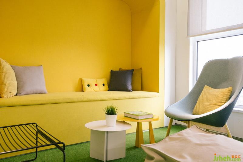 工作中難免有疲憊的時(shí)候,而對(duì)於釋放工作中的壞情緒,及時(shí)充電,休閑區(qū)就顯的得尤為重要。設(shè)計(jì)師選擇了黃色調(diào)作為主色調(diào),為空間注入活力亦傳達(dá)了一種明媚溫暖的精神力量,嘿,喪一喪就過去了。