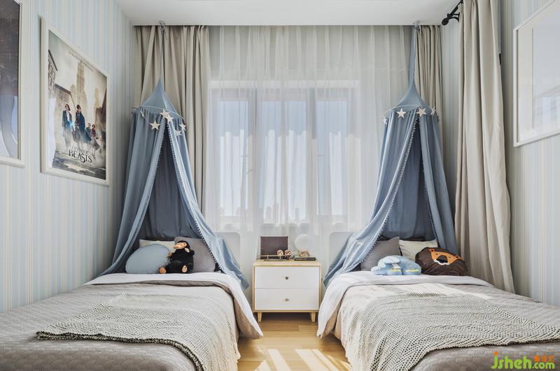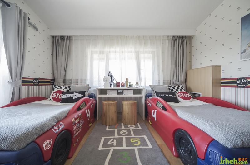 臥室的布置,設(shè)計(jì)師以素雅恬淡的配色做為房間的基調(diào),而床則作為房間的主題則根據(jù)孩子們的不同喜好來設(shè)置,或夢幻可愛的童話模樣,或炫酷有趣的汽車模型,好好睡覺也能變成一件快樂簡單的事。