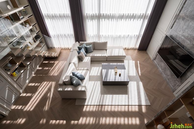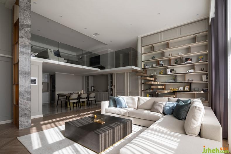 由于藝術(shù)美學(xué)與生活型態(tài)得交錯(cuò),設(shè)計(jì)師考慮了空間上運(yùn)用之色彩藝術(shù)和感受體驗(yàn)的素質(zhì),溫潤(rùn)的木質(zhì)地板引導(dǎo)到干凈利落大方的懸壁樓梯,而虛實(shí)交錯(cuò)的玄關(guān)隔屏,視覺(jué)映入至后方展示柜,降低彩度的灰白色調(diào),與細(xì)致的鐵件,巧妙融合在空間中,顯得別致耐咀嚼。設(shè)計(jì)公司