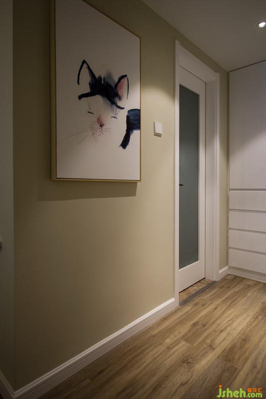 主衛(wèi)——原先是暗衛(wèi),采光不好,所以室內(nèi)設(shè)計(jì)師采用了半敞開的設(shè)計(jì),把靠房間的墻體改為磨砂玻璃,在上面又掛了一幅畫,相當(dāng)獨(dú)特吧!