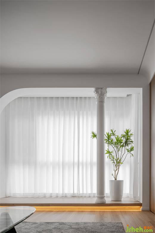 獨立的陽臺辟出一方靜謐天地,透過紗質(zhì)窗簾,光影斑斕,迎接滿屋的愜意陽光,一株綠植為此處注入勃勃生機,呈現(xiàn)出家與自然的巧妙融合。