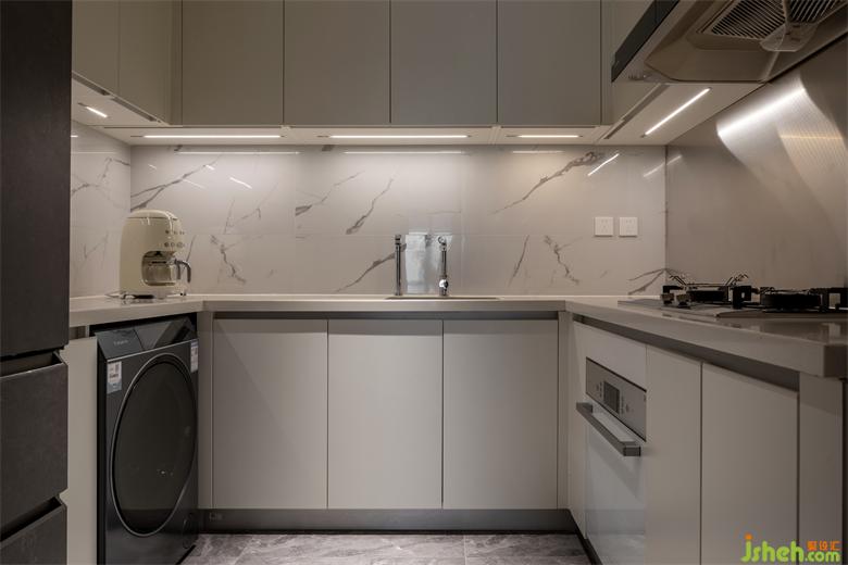 餐廚空間以“一動(dòng)到靜”的手法,為現(xiàn)代設(shè)計(jì)注入優(yōu)雅的意趣與韻味。開放式的廚房以純白為主色調(diào),簡(jiǎn)約干凈,在自然中回歸質(zhì)樸,天津和平翰林公館裝修設(shè)計(jì)摒棄繁復(fù)的裝飾和線條堆砌,將空間功能化繁為簡(jiǎn),讓簡(jiǎn)約之美浸潤(rùn)在生活的每一個(gè)角落。