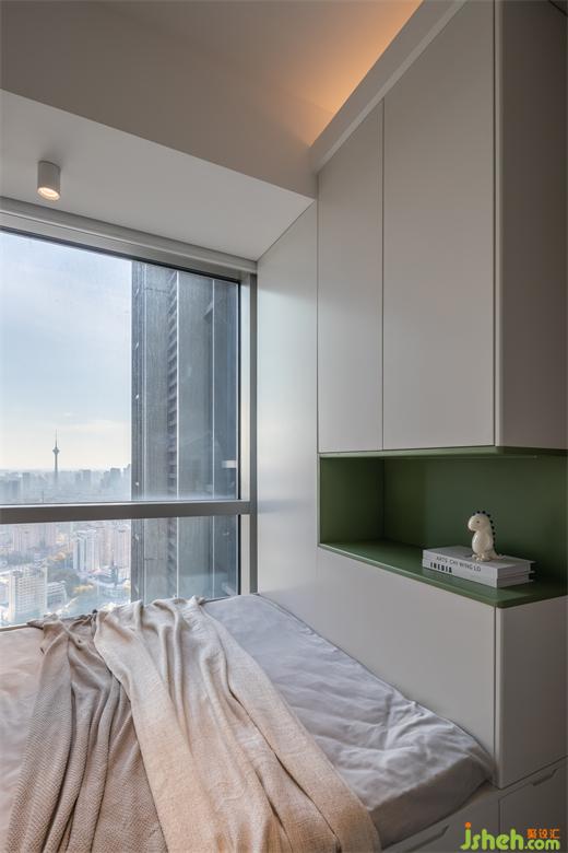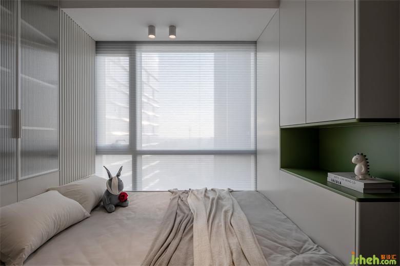 奶白色調給人一種冷靜、內斂,它會讓你感受到空間的寧靜和平和!臥室墻面增添清新綠收納,營造一種清新、淡雅的氛圍。