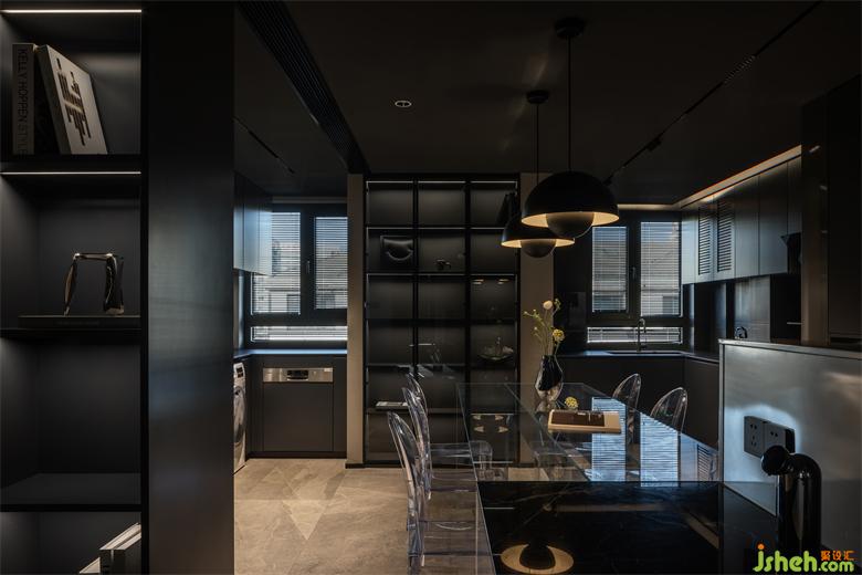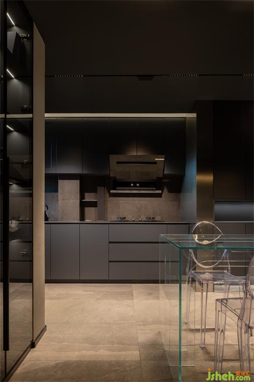 通過對(duì)場(chǎng)域?qū)傩缘纳疃韧诰?,廚房也被賦予了深邃與流動(dòng)并存的設(shè)計(jì)蘊(yùn)涵。明滅光影的虛實(shí)互映、空間尺度的精準(zhǔn)把握,融府裝修設(shè)計(jì)讓烹飪、交流、聚集的實(shí)質(zhì)需求得到滿足,同時(shí)也暗示著多維的場(chǎng)景敘事可能