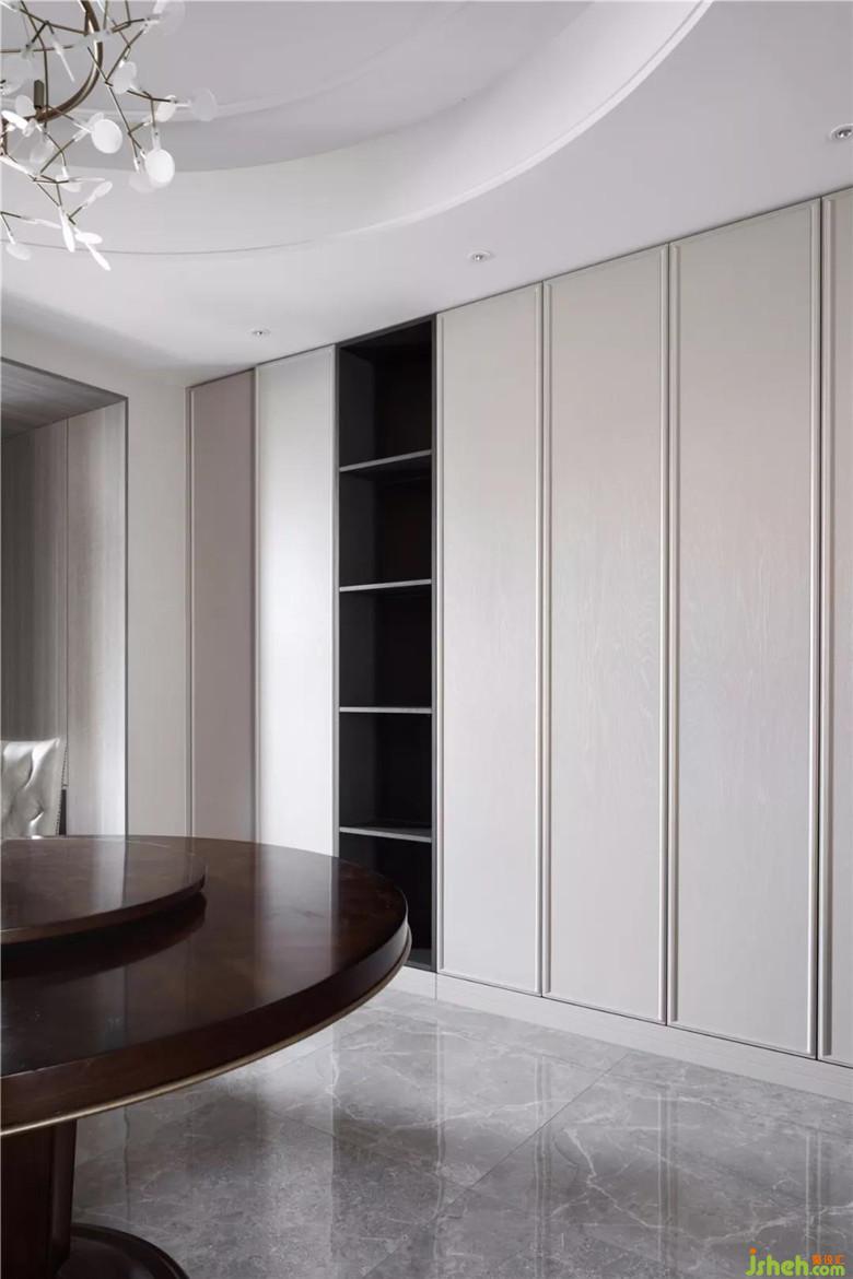 餐廳位于客廳的旁邊,四方空間里,一張圓桌承載著大家庭用餐時的歡聲笑語。裝修公司