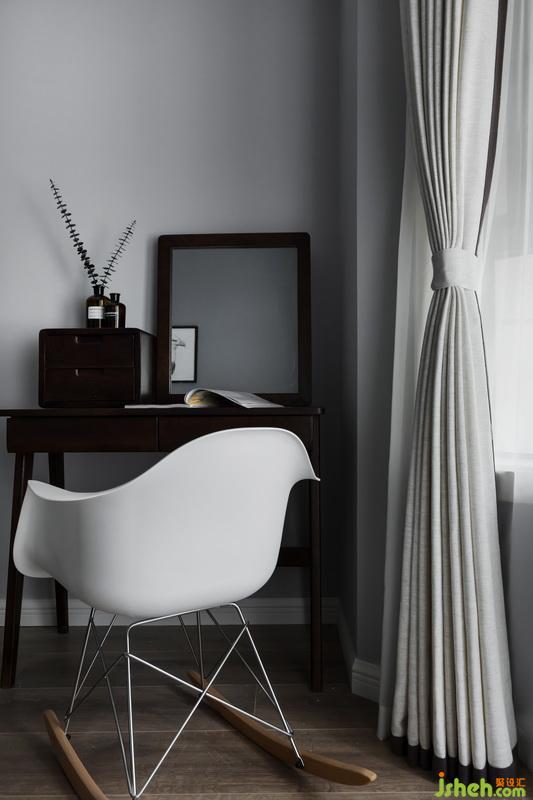 室內(nèi)設(shè)計師為什么會選擇搖椅來當梳妝椅,不管從它的靜態(tài)和動態(tài)都更適合當休閑單椅;其實這里藏著我們獨有的體驗式小心機;當梳化時,我們會身體前傾更靠近鏡面,坐下后,只需往前傾斜,起身,落座都不需調(diào)整座椅前后距離,就可直接使用;然后它的座深也會比梳妝凳或梳妝椅的舒適性更強;休閑時刻它就兩用成落地窗簾前一道風景線。