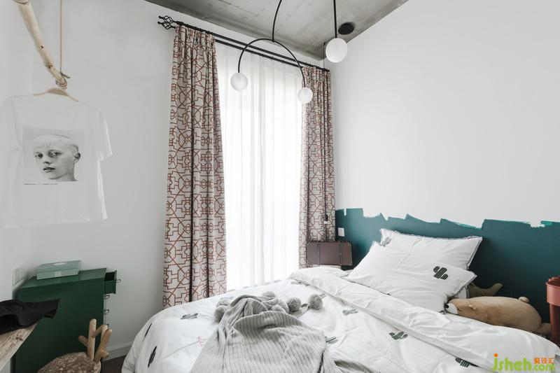 由于空間尺度的限制,也因?yàn)闃I(yè)主孩子小個(gè)子的身高,室內(nèi)設(shè)計(jì)師采取了定制床尺寸,縮減到1.4M*1.9M,讓空間更合理的利用,有了壁掛木臺(tái)面的小小梳妝位。床頭小吊燈是孩子的最愛,橙色紋理的窗簾與半高綠色床頭背景在燈光的映襯下,讓孩子總愛窩在這里,放空自己。