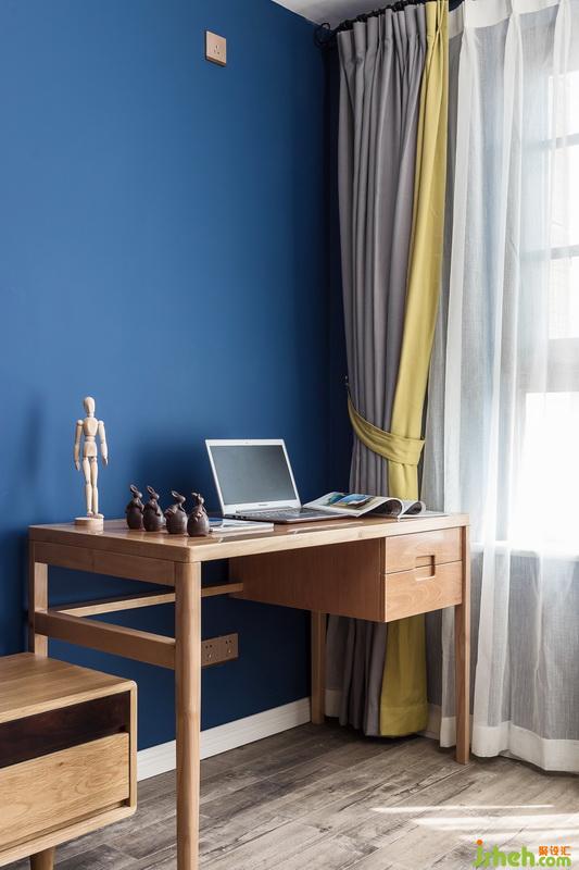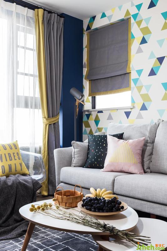 4、主要用材:強化木地板,色彩乳膠漆,幾何墻紙,成品家具