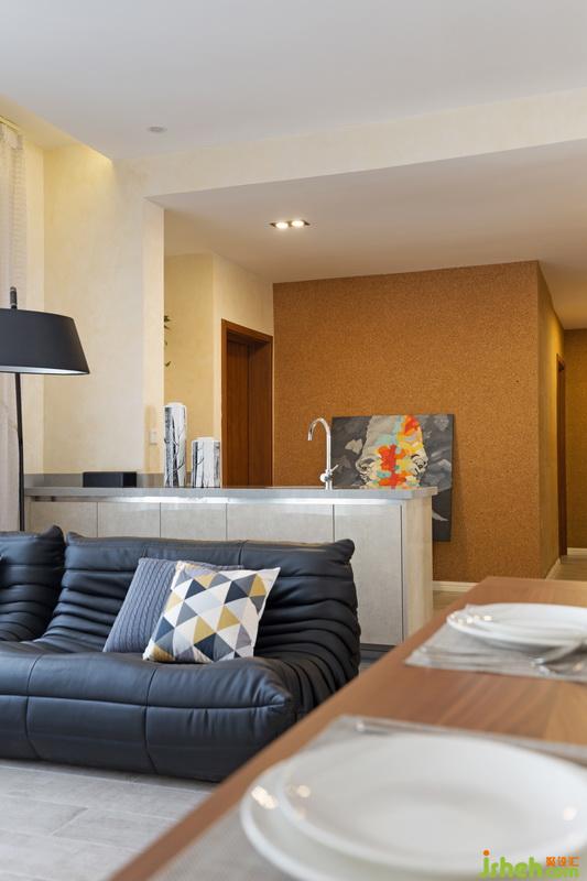客廳地面室內(nèi)設(shè)計師采用仿木紋地磚,灰色主調(diào)卻有木紋的柔和;墻面藝術(shù)涂料銜接天花的明亮白色和地面的細膩質(zhì)感;室內(nèi)融入木質(zhì)家具的溫潤感及色彩柔和度;軟木修飾進行視覺延伸;整個空間線條處理簡潔明快,卻又在細節(jié)及材質(zhì)上下工夫,拒絕單調(diào),讓簡約變得有內(nèi)容。公共區(qū)域整合家庭結(jié)構(gòu)所需,碰撞出一種屬于“家”的圍合狀態(tài)。舍棄傳統(tǒng)居家布局,家人可共度歡快亦有私享空間;我們所追求的溫馨不僅僅是在風(fēng)格的塑造上,更多的應(yīng)在居家體驗里。