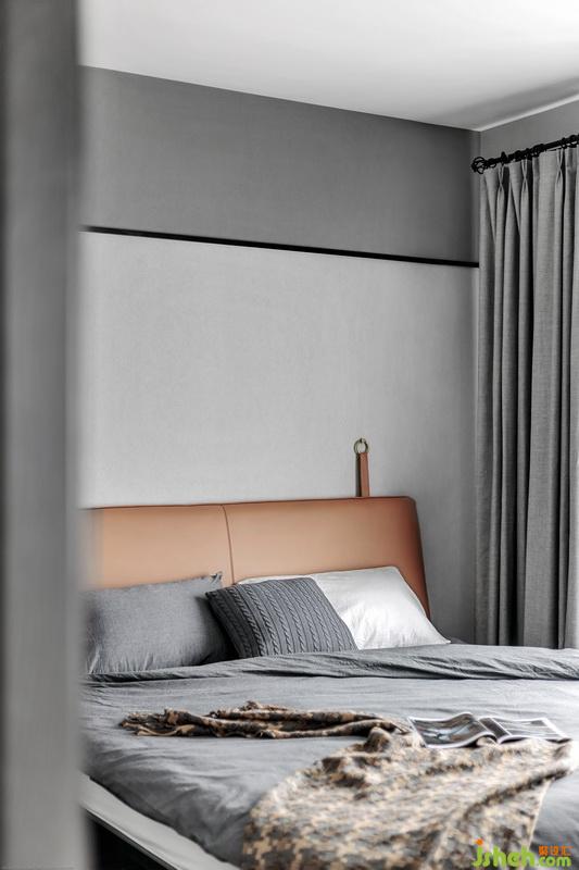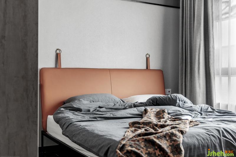 沉穩(wěn)的灰度空間,室內(nèi)設(shè)計(jì)師搭配具有復(fù)古韻味的牛皮面床靠墊,有一股率性,亦透露著本質(zhì)的細(xì)膩,保養(yǎng)清潔也是很方便。