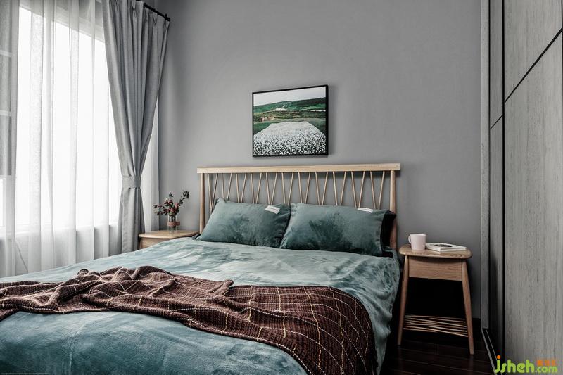 次臥目前為父母偶爾來(lái)成都準(zhǔn)備,未來(lái)作為兒童房考慮,所以現(xiàn)在不會(huì)有很強(qiáng)的年齡偏向性,為以后更改創(chuàng)造條件,為了保證父母的睡眠,室內(nèi)設(shè)計(jì)師選擇色調(diào)偏深,選白橡木床一部分因空間緊湊,這種床大小合適,不會(huì)很擁擠與占地,并且環(huán)保,另一方面是這種北歐簡(jiǎn)潔和英倫優(yōu)雅氣質(zhì)的結(jié)合,是賞心悅目的,風(fēng)景畫(huà)選擇綠油油的田野風(fēng)景讓空間更具自然舒適淳樸的感覺(jué)。