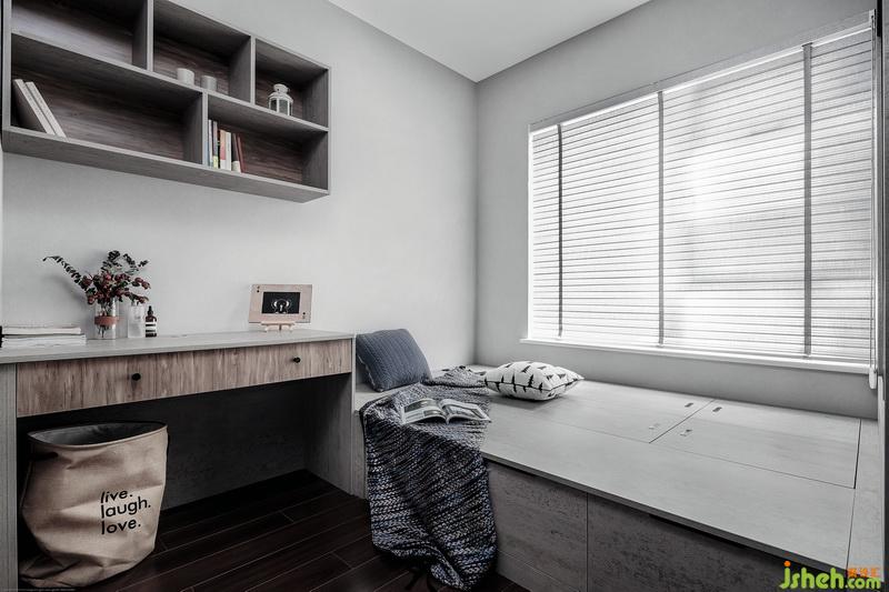 房間現(xiàn)在可以看書(shū)辦公當(dāng)書(shū)房,空間顏色比較沉靜,當(dāng)在作為多功能房的變換下,適宜性也很強(qiáng)。