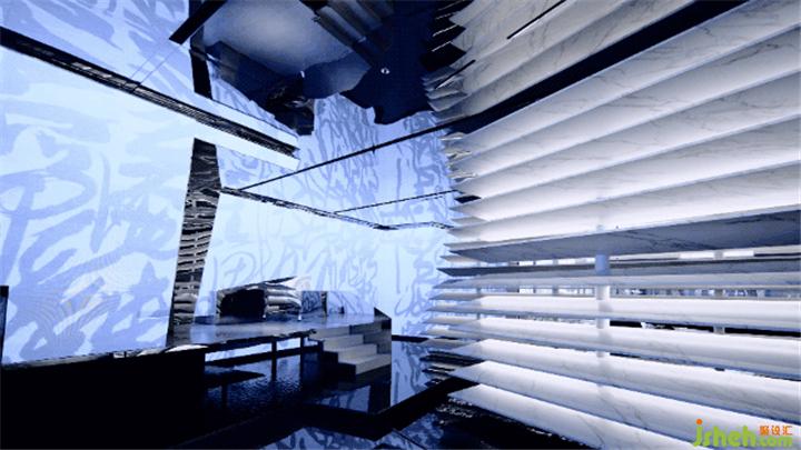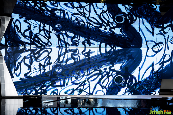 In addition to conveying awe and praise to the landscape, the designer tries to express the restoration of the connection between man and nature. The multimedia art displayed throughout the exhibition hall showcases the changing scenery of mountains, rocks, and ravines, which turn into the silky texture, the West Lake ripples, and finally the black and white ink.