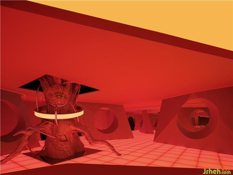 樹干破白墻而出,反映了形而上的空間美學,與遺憾之樹構成詩意的聯(lián)結。美術館設計白色通頂LED墻體印著沙丘之形,與苔蘚、座椅遙相呼應。