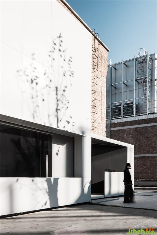 倉庫建筑原本開敞格局與優(yōu)越的挑高為創(chuàng)意類辦公空間提供了豐富的空間可能性,在留原工業(yè)遺產(chǎn)的線索之上,崔樹通過雕塑般的手法,在建筑內(nèi)外制造了的兩個體量,既實現(xiàn)了作為品牌總部的識別性外觀,同時滿足內(nèi)部不同功能的有機融合組織。
