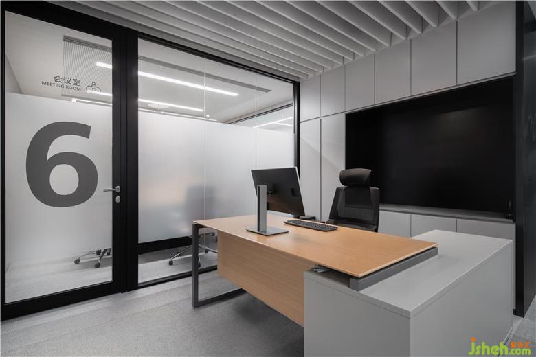 ▼會(huì)議室以銀灰色背漆玻璃搭配銀色地毯,玻璃上的豎條紋標(biāo)識(shí)貼膜讓會(huì)議室內(nèi)部若隱若現(xiàn),既保證隱私也保證了空間通透