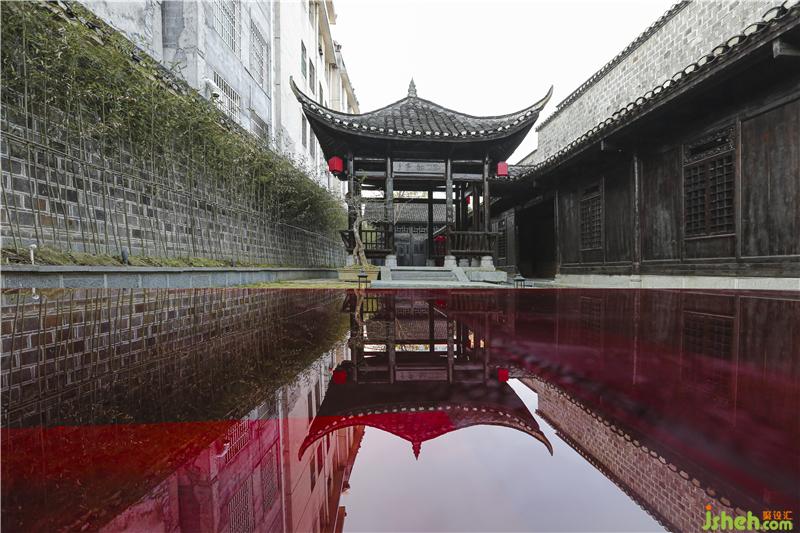 ▼講臺上古亭的倒影