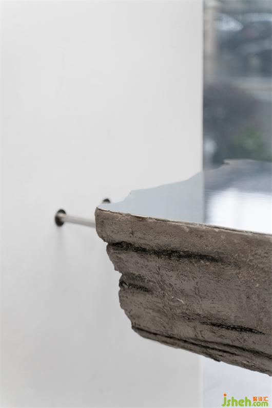 切開(kāi)樹(shù)木,不是熟悉的木質(zhì)纖維,而是光滑的鏡面般金屬物質(zhì)??Х戎圃炀衷O(shè)計(jì)樹(shù)木飄浮在空中,詭異的截面反射著這個(gè)美好卻又陌生的世界。