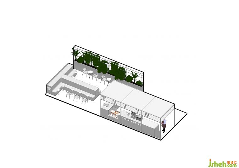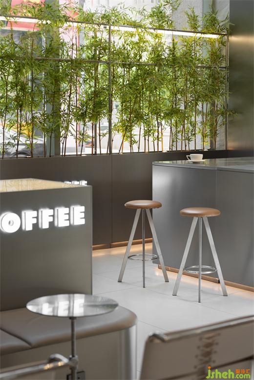 l 咖啡吧臺(tái)設(shè)計(jì)頂棚采用發(fā)光燈膜,浮于吧臺(tái)上方。