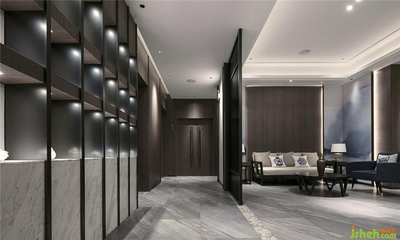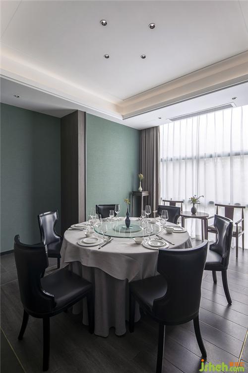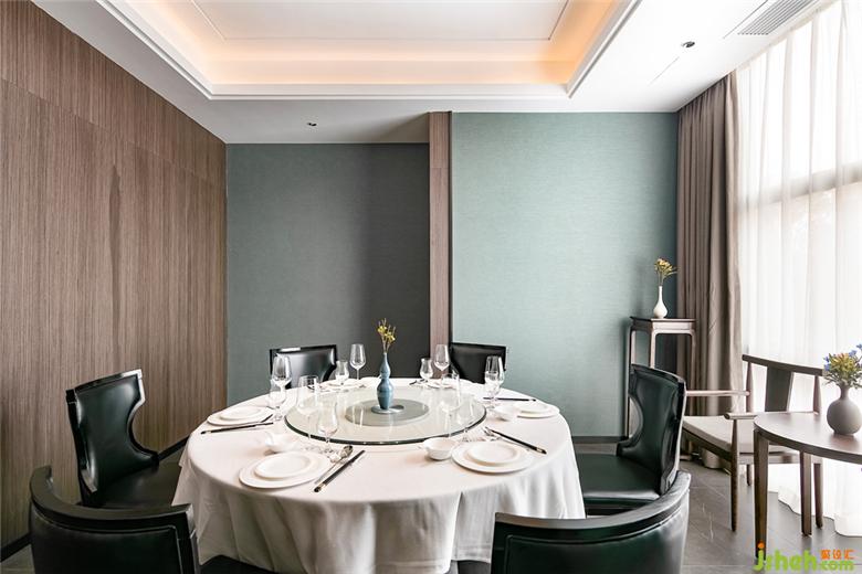 本案運(yùn)用蘑菇石的墻面背景,粗獷有力量。KD的胡桃木飾面板,溫潤而穩(wěn)重。地面覆蓋了兼具防滑功能與自然肌理的巖石質(zhì)感地磚。空間配色為胡桃木色、藍(lán)色、和卡其色系。藍(lán)色是帶有憂郁、天真、冷靜同時(shí)具有皇室的高級感和威嚴(yán)感的顏色??臻g采用胡桃木色木飾面,搭配飽和度低的牛仔藍(lán),營造靜謐穩(wěn)重的就餐氛圍。茶臺和桌面的花依據(jù)時(shí)令進(jìn)行變換,冬天的雪柳臘梅,春天的芍藥牡丹,夏天的藕荷,秋天的紅楓。餐桌上的菜品也是四時(shí)不同。記四時(shí)茶食,賞四時(shí)美景。除了石材木材這些天然的材質(zhì)以外,還運(yùn)用了現(xiàn)代裝飾中常用的砂黑啞光不銹鋼進(jìn)行收口。為了緩解直線條帶給人的剛硬刻板的感受,所有主題墻面均采用山水題材的墻畫。與空間相匹配的氣場,靈動(dòng)的曲線和深淺變化的藍(lán)色,同時(shí)提升了空間的延展性和動(dòng)態(tài)美。將空間比喻成人的話,骨架和靈魂是堅(jiān)韌的,身段是柔軟的。剛與柔,陽與陰的融合。餐廳設(shè)計(jì)
