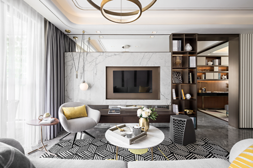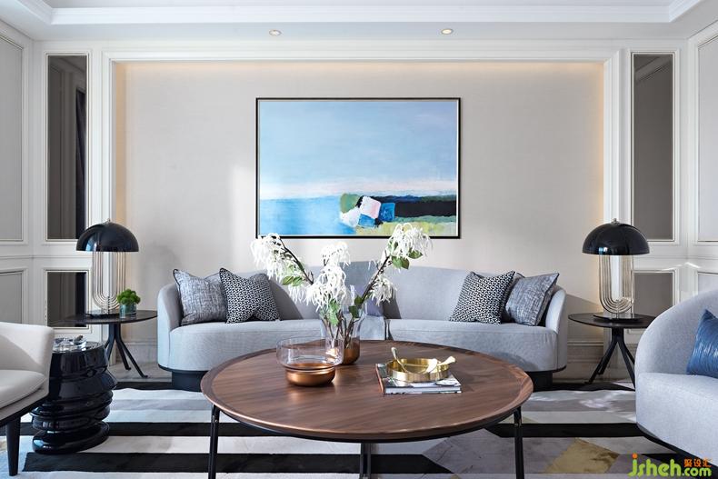 設(shè)計(jì)從把控力的均衡上給人以穩(wěn)定的心理感受,硬裝設(shè)計(jì)提取了歐洲元素并引入法式輕奢格調(diào),不禁想起了塞納左岸的藝術(shù)情懷;軟裝則貫徹現(xiàn)代極簡主義的原則,整個(gè)空間在協(xié)調(diào)中尋求沖突,在微妙的反差中獲得鮮明的互補(bǔ)平衡??臻g中的變調(diào)是色彩引發(fā)的視覺體驗(yàn),顏色合而不同,中性灰作為過渡的中間色不偏不倚,讓其他色彩在其襯映下呈現(xiàn)出最本質(zhì)的面貌,一切都那么自然而然。