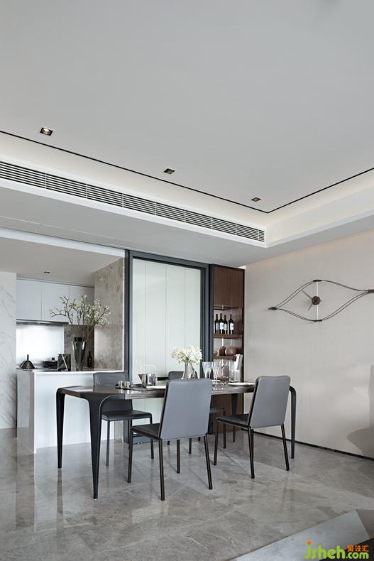設(shè)計(jì)以空間為畫(huà)布勾勒出充滿張力的未來(lái)藍(lán)圖,用與眾不同的表達(dá)方式將流行時(shí)尚與現(xiàn)代氣息兼收并蓄;客餐廳米灰色背景墻的簡(jiǎn)約柔和與深灰色家具的含蓄內(nèi)斂相得益彰,產(chǎn)生恰到好處的舒適度,灰度適中的色彩調(diào)性散發(fā)優(yōu)雅酷感的空間氣質(zhì)。