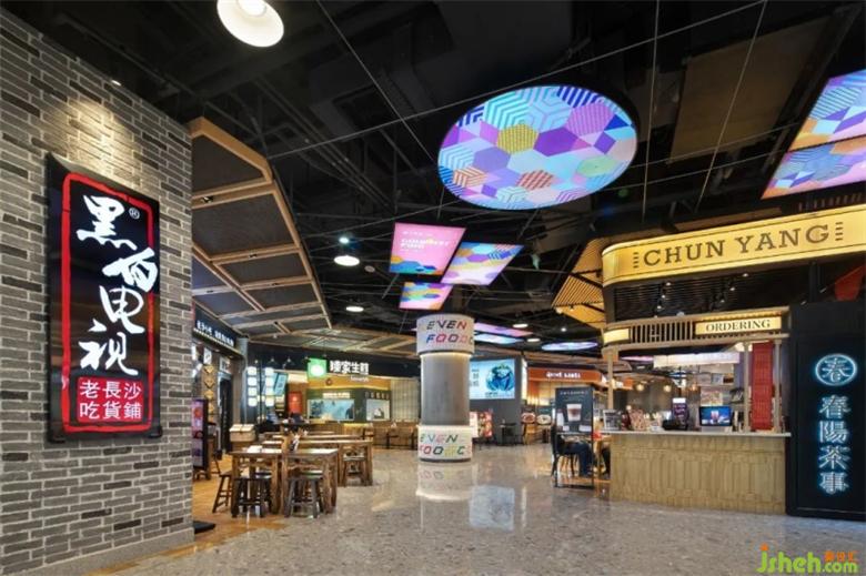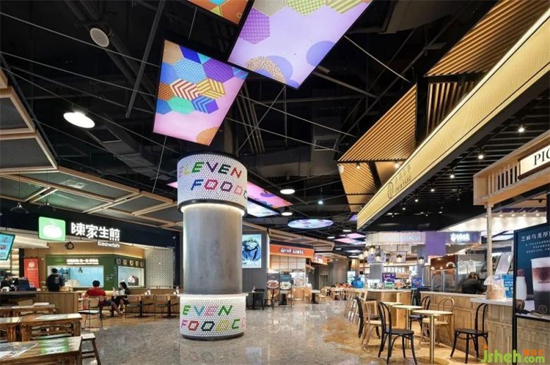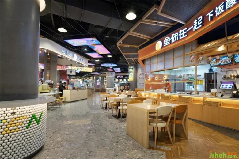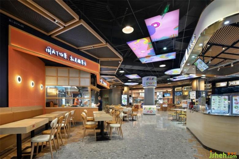入口處由很多個不同顏色的高爾夫球組成的標(biāo)志性的大臺燈,散發(fā)出溫暖的光,美食廣場設(shè)計(jì)將大家?guī)胼p松愉悅的空間,從而開始美食之旅。