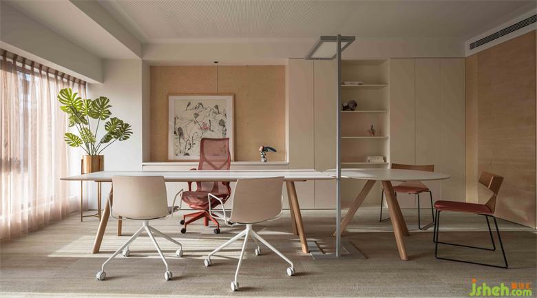 總經(jīng)理辦公室的靈感來(lái)自夏秋交際時(shí)的景色,辦公室設(shè)計(jì)參差浮現(xiàn)在各處的綠色、暖黃和朱紅,是豐收時(shí)節(jié)的色彩間奏,跳躍著點(diǎn)綴空間。