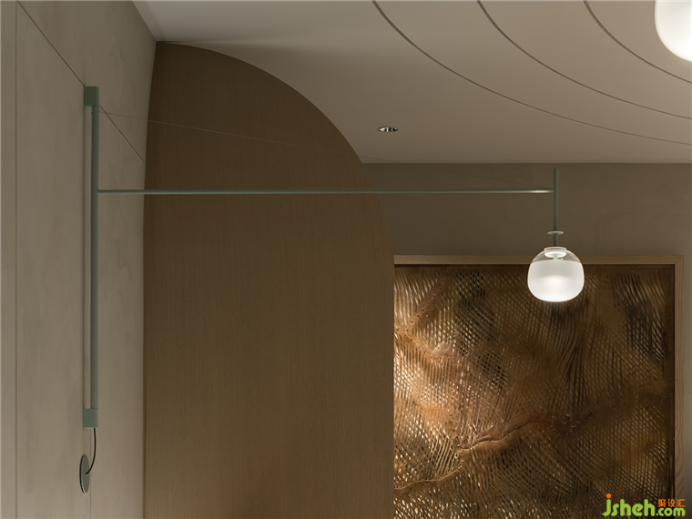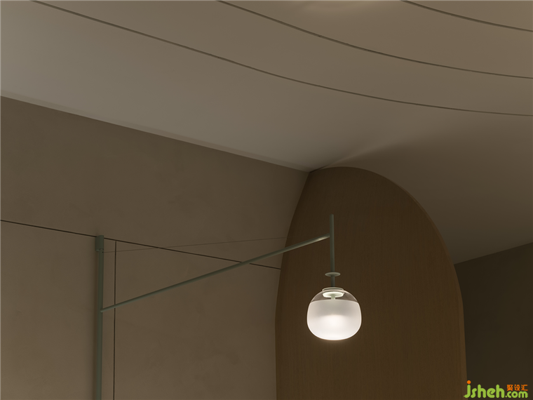 非線性的天花板設計提供了獨特的視覺體驗,采用東方美學強調了留白,優(yōu)美的曲線流暢地鋪開,創(chuàng)造出一個流動而平衡的空間,展現(xiàn)生命和運動之美。