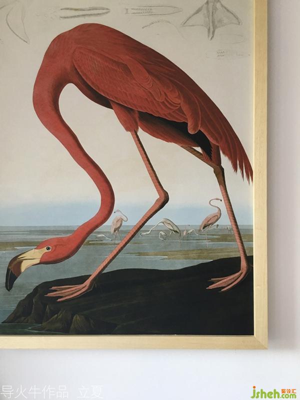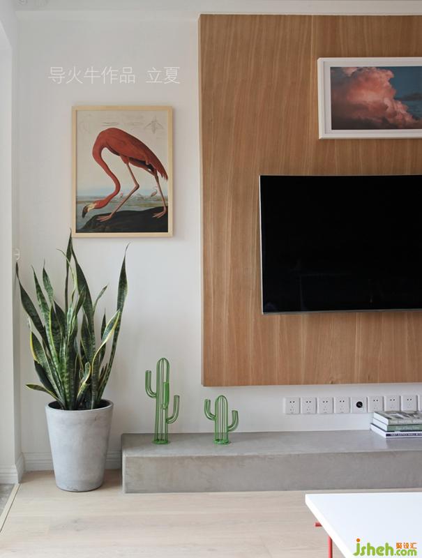 綠色劍蘭、沙漠仙人掌和紅色火烈鳥(niǎo)的顏色對(duì)比,客廳角落點(diǎn)輟的熱帶自然風(fēng)。