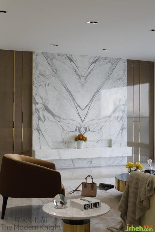 客廳的雪花白大理石開釆自意大利中北部的卡拉拉小鎮(zhèn),由阿爾卑斯山脈深處沉睡了幾千萬年的巖石和巖漿蛻變而成,時(shí)間之手將它打造得優(yōu)雅而高貴,豐富細(xì)膩的紋理是大自然最美好的饋贈(zèng),它從遠(yuǎn)洋貨輪碼頭出發(fā)到達(dá)中國,是萬里挑一的他山美石,近看紋路的脈絡(luò),像極了潑墨筆跡滲透進(jìn)石材內(nèi)部的每一寸厚度中,力道剛勁細(xì)膩。