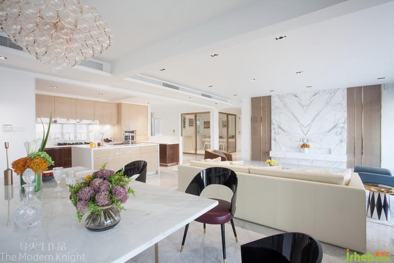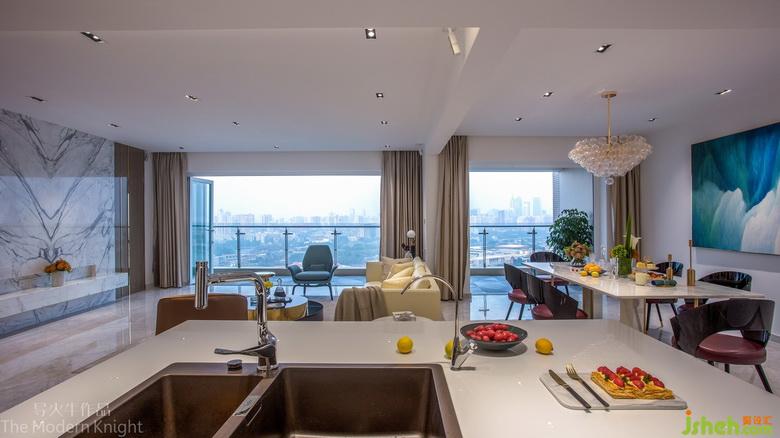 寬敞明亮的客餐廳和中西廚,三個(gè)空間打破區(qū)隔,融為一體