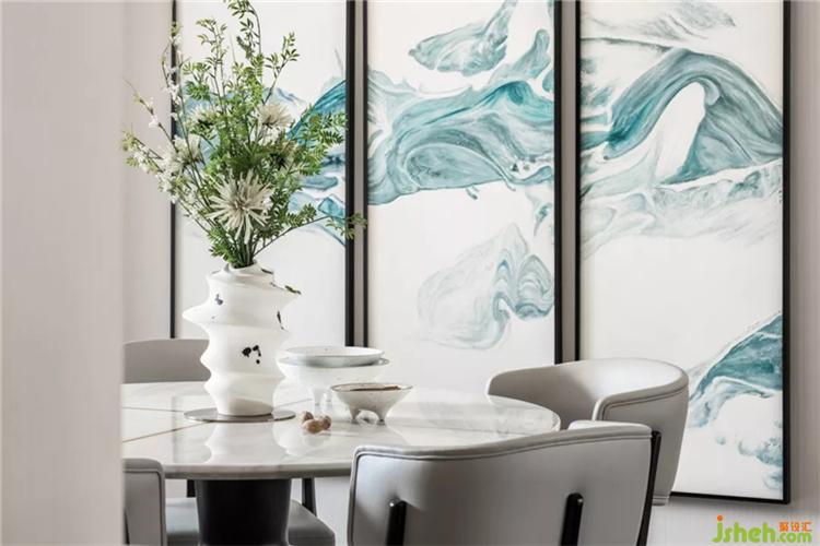 借助設(shè)計(jì),不同的理想生活被融匯共生,多樣化的生活方式在不同空間呈現(xiàn)。而在該空間中,水墨趣味和精致物件則帶來(lái)東方寫意美,設(shè)計(jì)師擺脫沉悶的配色,用素凈打造空間的通透與朦朧。
