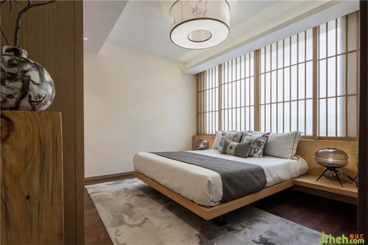我們摒棄曲線,采用具有較強(qiáng)的幾何感線條,在主人房注入和風(fēng)。而在著手這一切之前,木,則是最合適的空間底色。