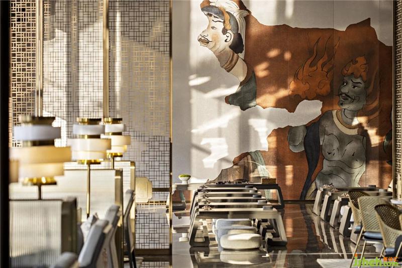 起伏的山川綠,純潔的流水白,典雅的木質棕,穩(wěn)重的紋理黑,驚艷的中國紅,高貴的拉絲金。色彩的藝術指引來者踏入這神秘之境,步步探索。