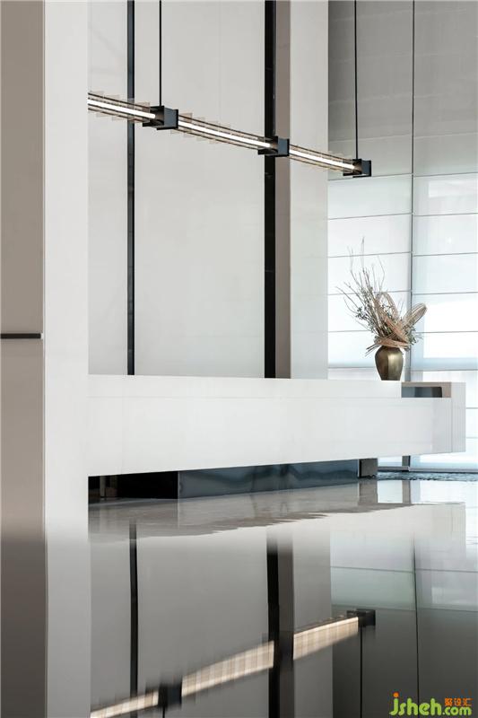 深圳售樓處設計大理石漆黑如夜,又如平靜的湖水,將一切倒影收入,虛幻與真實相對而立,有時界限分明,有時融為一體,讓人迷惑。