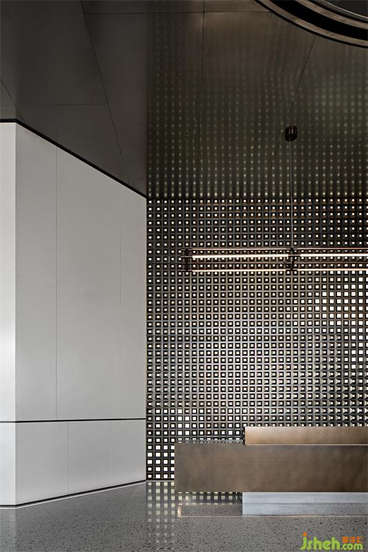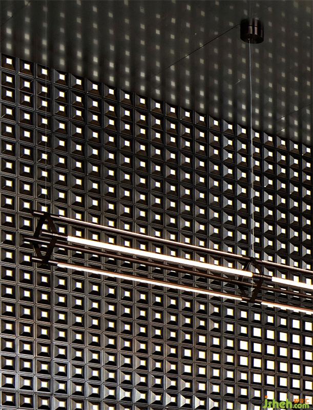 充滿(mǎn)藝術(shù)氣息的吊燈,現(xiàn)代工藝對(duì)金屬材質(zhì)的雕琢,與銀幕相疊加呈現(xiàn)視覺(jué)效果。