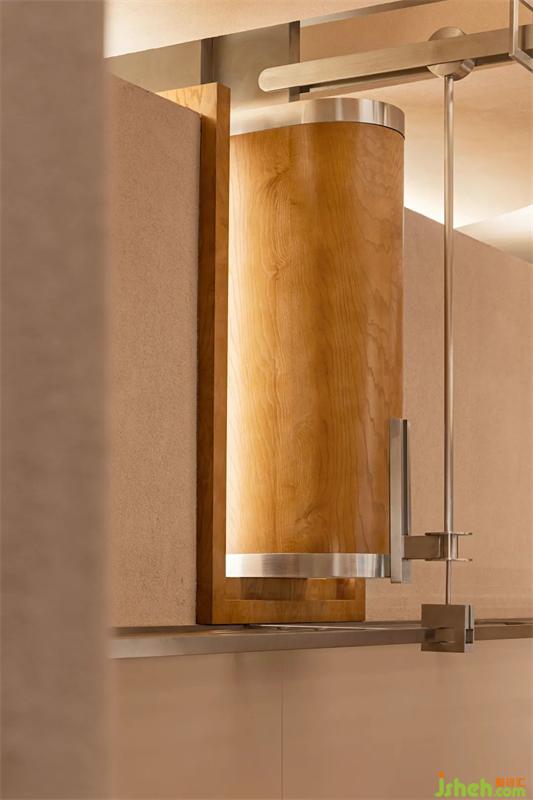 元素的構(gòu)造通過金屬、原木材質(zhì)的冷暖質(zhì)感的對比、空間結(jié)構(gòu)的對稱、特異組合,構(gòu)成邏輯處理空間秩序形成的辨識度和個性,經(jīng)過多面切割和重新組合形成了獨特的空間序列。