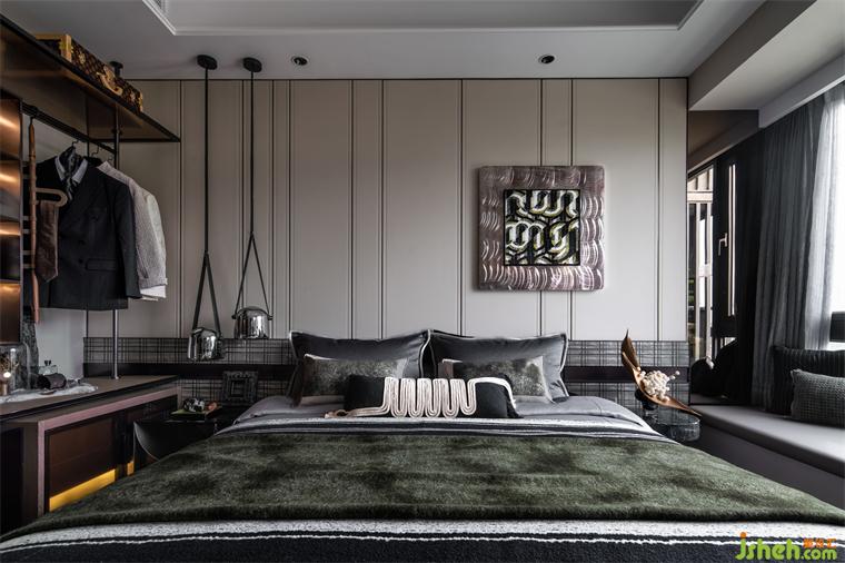 主臥更像是主人的一隅獨(dú)立天地,裝飾畫提取嶺南特色建筑經(jīng)典元素— —鑊耳屋結(jié)構(gòu)進(jìn)行重構(gòu),樣板房設(shè)計(jì)帶著對(duì)文化和記憶的共情、與時(shí)代生活的包容力,成就一方嶺南風(fēng)情天地。