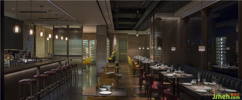 “為摒棄無用的裝飾,集中所有精力引景入室,于是景致源頭的餐飲檔口和酒吧區(qū)就成為了空間的重點?!?