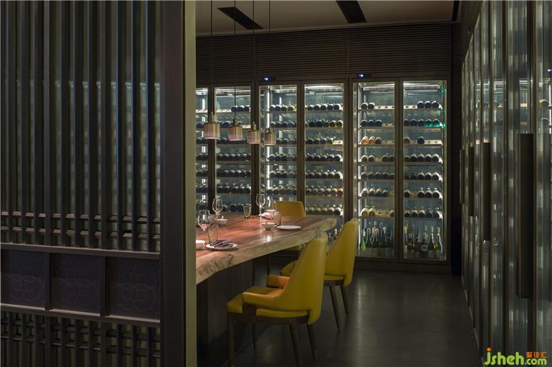 場所左側(cè)兩個劃分出一間紅酒房作為存酒區(qū),客戶可在此隅品鑒美酒。
