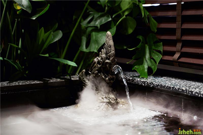 經(jīng)過通道,可以感受到空間帶來的藝術(shù)傳達(dá),陷入地面的鵝卵石臺(tái)階透出婚暗的光、小提琴穿插在30種以上熱帶綠植中、接近地面的吊燈被無限延伸、密室里隱藏的Spa鏡門后面是兩個(gè)截然不同的世界,推開就是羅馬假日或熱帶叢林的Spa體驗(yàn)感受;在這個(gè)小空間里,John魔術(shù)般的手法讓顧客每步引發(fā)異想。最終進(jìn)入黑暗閉上雙眼,享受正宗泰國古法手技下的AROMA DREAM。