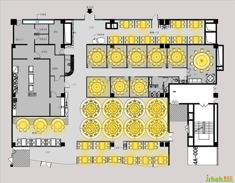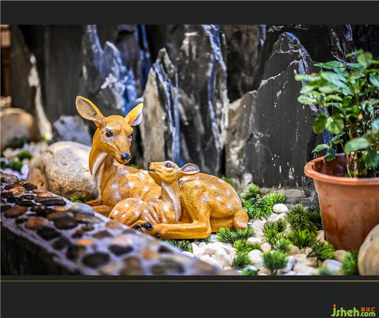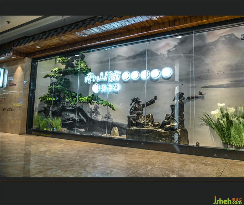 包廂過道燈上作畫,畫中有景,水墨燈光,曳致生輝,壁畫主題分明,斑斕中窺得一絲祥和。包廂華燈映射到墻上的山水畫,靜謐而溫和,莊重中透著一絲素雅。餐廳設(shè)計(jì)