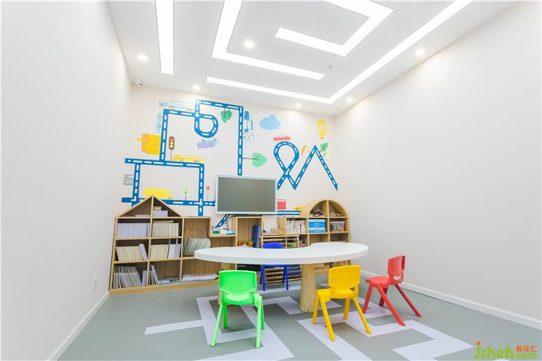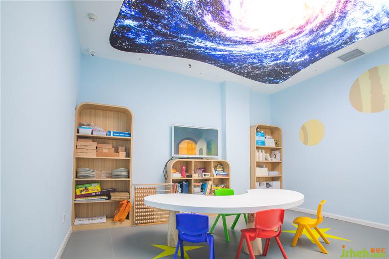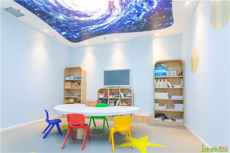 大廳的腦力沖擊畫面讓人過目不忘,主題色彩鮮明,過道是藍白交替的科技之門,由門而入,有外太空主題教室(星星)、人工智能主題教室(汽車)、環(huán)境科技(森林)主題教室、未知文明主題教室(迷宮),生物科技主題教室(動物世界)、海洋文明主題教室(海底世界),打開每一扇門,都將進入不同的主題環(huán)境學習,對專注力提升和腦力開發(fā),各有側(cè)重與裨益。