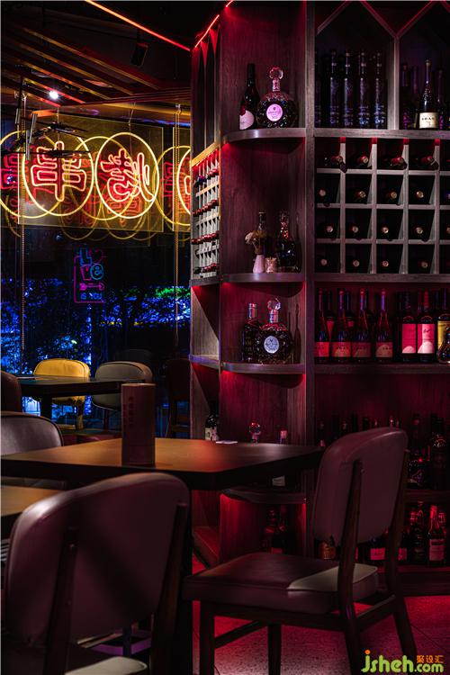 到了店里最熱鬧的地方--餐廳酒吧。隨著人們現(xiàn)在對(duì)口味越來(lái)越挑剔,單純可口的口味無(wú)法滿足他們,氛圍往往成為了吸引人的賣點(diǎn)。店里打造了一面酒柜,酒吧的吧臺(tái)上陳列著各種不同口味的酒,供食客們挑選。南京餐廳設(shè)計(jì)造型墻中間的一面巨大的酒柜墻體,琳瑯滿目的酒類飲品引人注目,水滴狀的藝術(shù)裝置吊燈猶如神話故事中的水晶,展現(xiàn)空間的唯美性,高級(jí)感。人們坐在吧臺(tái)旁邊,要上一杯自釀啤酒,聽(tīng)著音樂(lè),誘人的串串風(fēng)味向四周散發(fā),大概任誰(shuí)都會(huì)忘了生活的一切煩惱和不快,盡情享受當(dāng)下的一份愜意和放松吧!