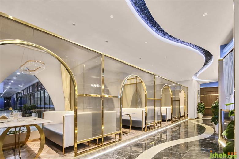 海鮮餐廳設(shè)計以“海洋元素+輕奢”風(fēng)格作為空間主體基調(diào),融入深海世界的氛圍,以期達(dá)到設(shè)計和經(jīng)營理念的結(jié)合,形成一個充滿現(xiàn)代感、質(zhì)感和沉浸感的餐飲空間。